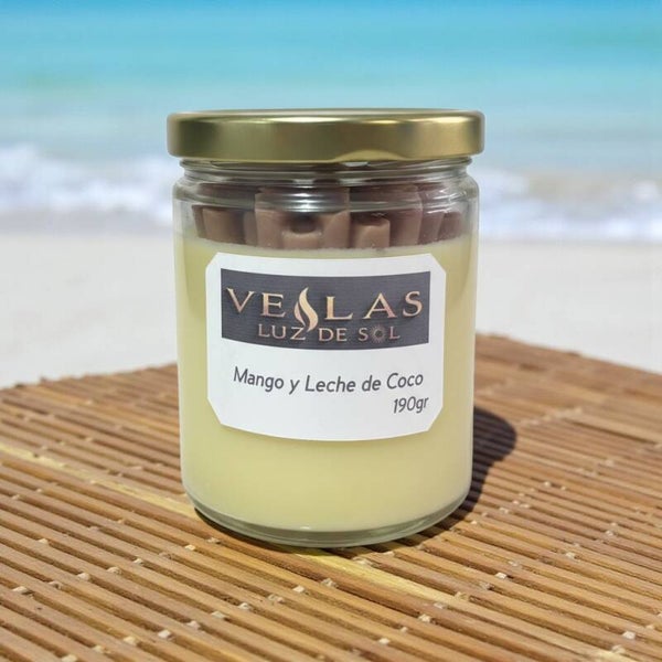 Nuestra vela artesanal de Mango y Leche de Coco es justo lo que necesitas.