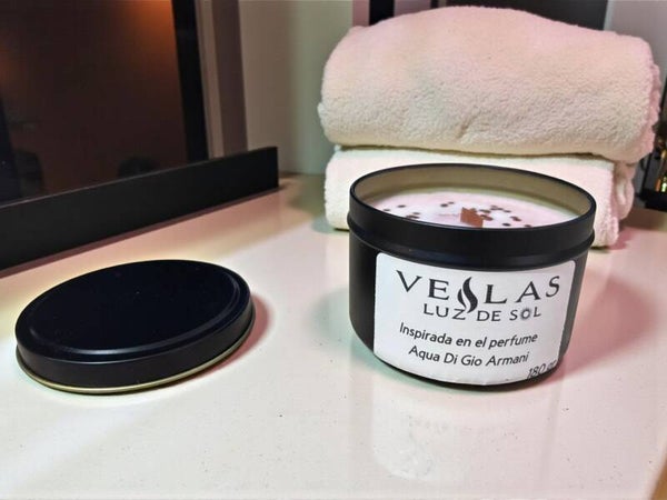 Descubre la esencia del hombre moderno con nuestra vela aromática Inspirada en la fragancia Acqua di Gio.