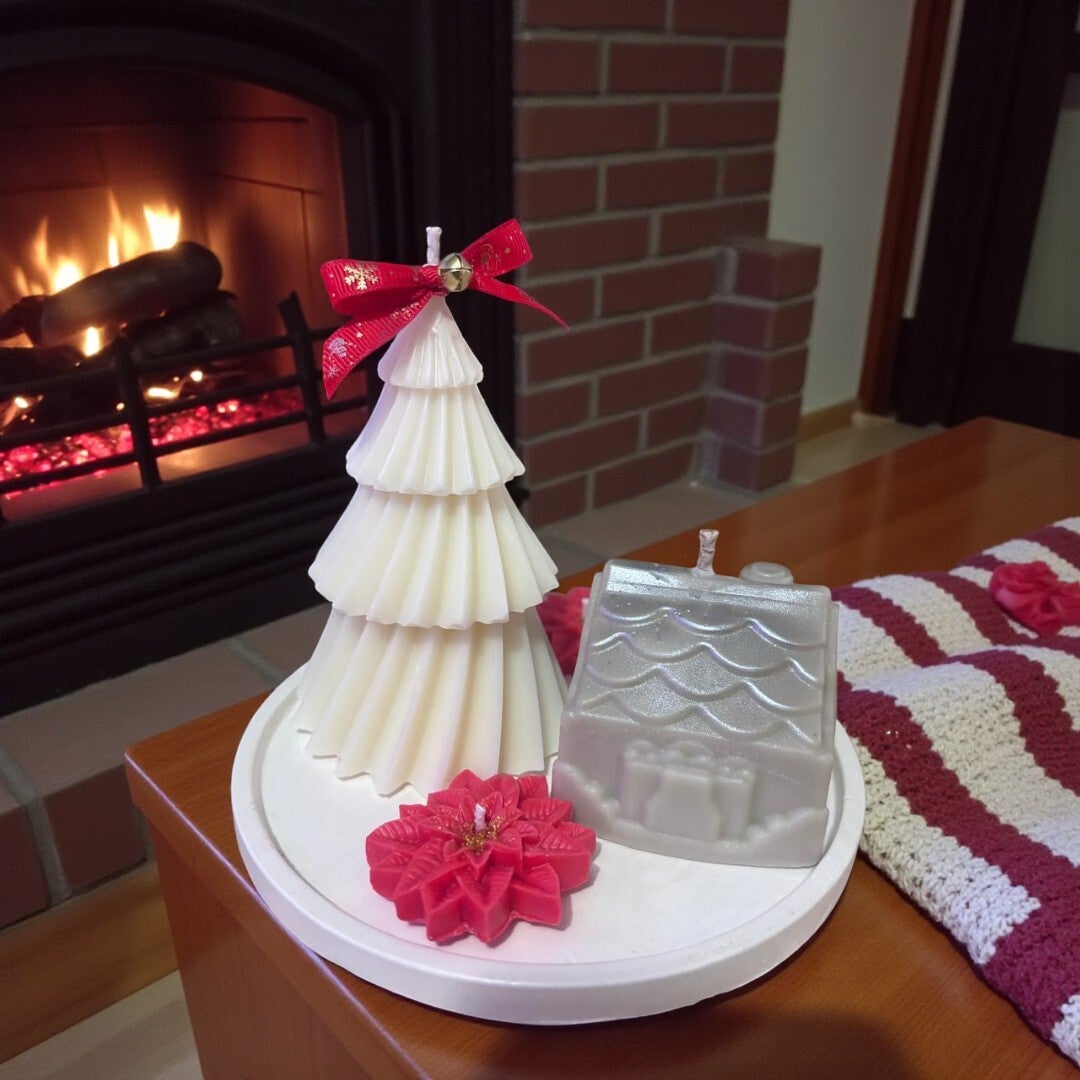 Kit Velas Decorativas Navideñas Pino Blanco + Casita + Noche Buena